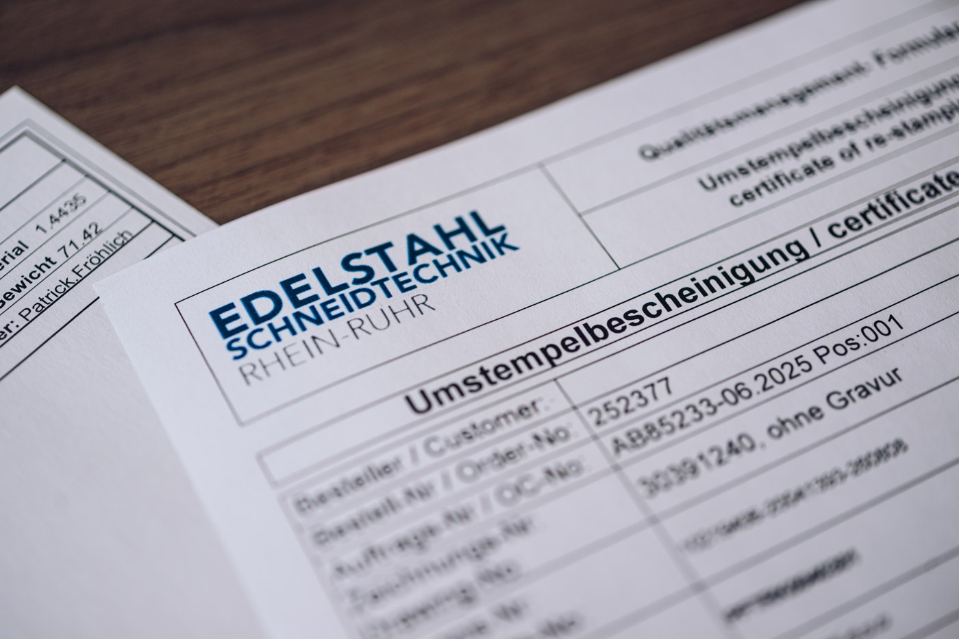 Wir bevorraten ausschließlich Tafeln von namhaften Herstellern mit Abnahmeprüfzeugnis 3.1 oder 3.2 gemäß EN 10204.